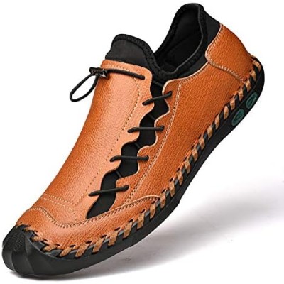 Mens Casual Shoes Summer Breathable Sneakers Loafers Walking Shoes Hand Made Lace-Up Leather Dress Flats Shoes